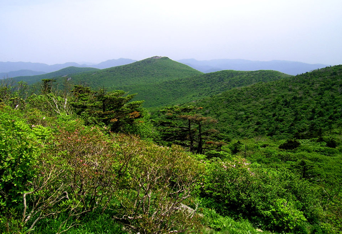 정상에서의 조망을 뒤로하고 급경사로 내려서서 완만한 길로 진행하다 보면 좌측으로 문수봉 갈림길이 나온다. (이정표가 있다) 마루금은 우측 부소봉 쪽으로 꺾어져야 한다. 부소봉(1,546m)은 단군의 아들인 부소왕의 이름이며 부소 봉사면 길은 온통 철쭉과 진달래나무가 군락을 이루고 있다. (부소봉 정상은 다녀와야 하며 약 20분 정도 소요된다)