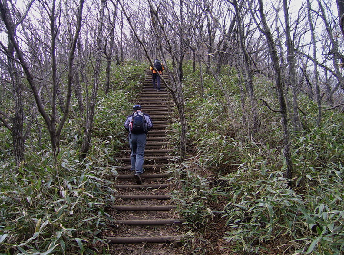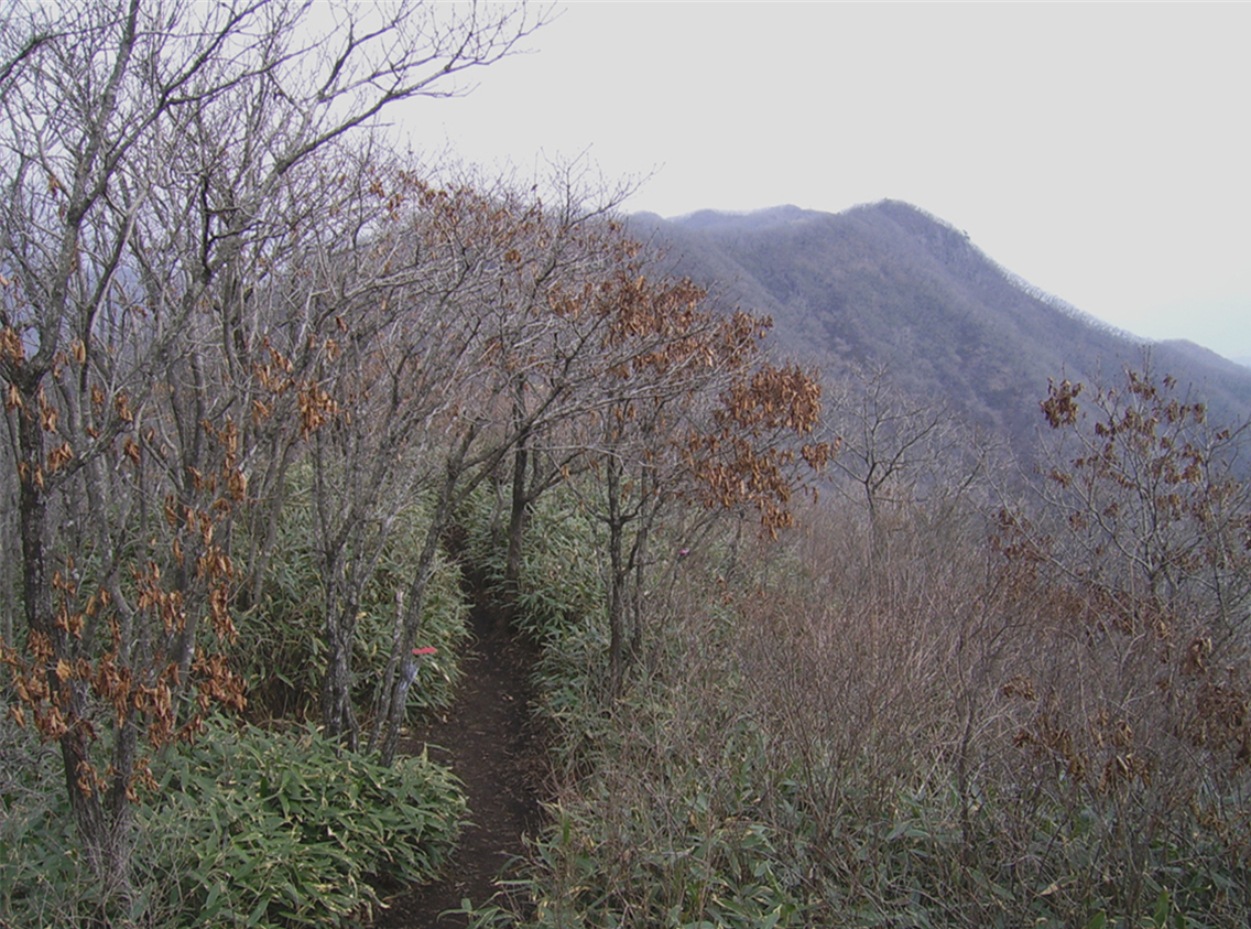 덕산재 매점 뒤 절개지로 올라서면서부터 본격적인 산행이 시작된다. 잡목으로 뒤덮인 능선에는 군데군데 철쭉나무가 눈에 띈다. 833.7m 봉 직전에서 왼쪽으로 틀면 평탄한 잡목 숲을 한참 헤치