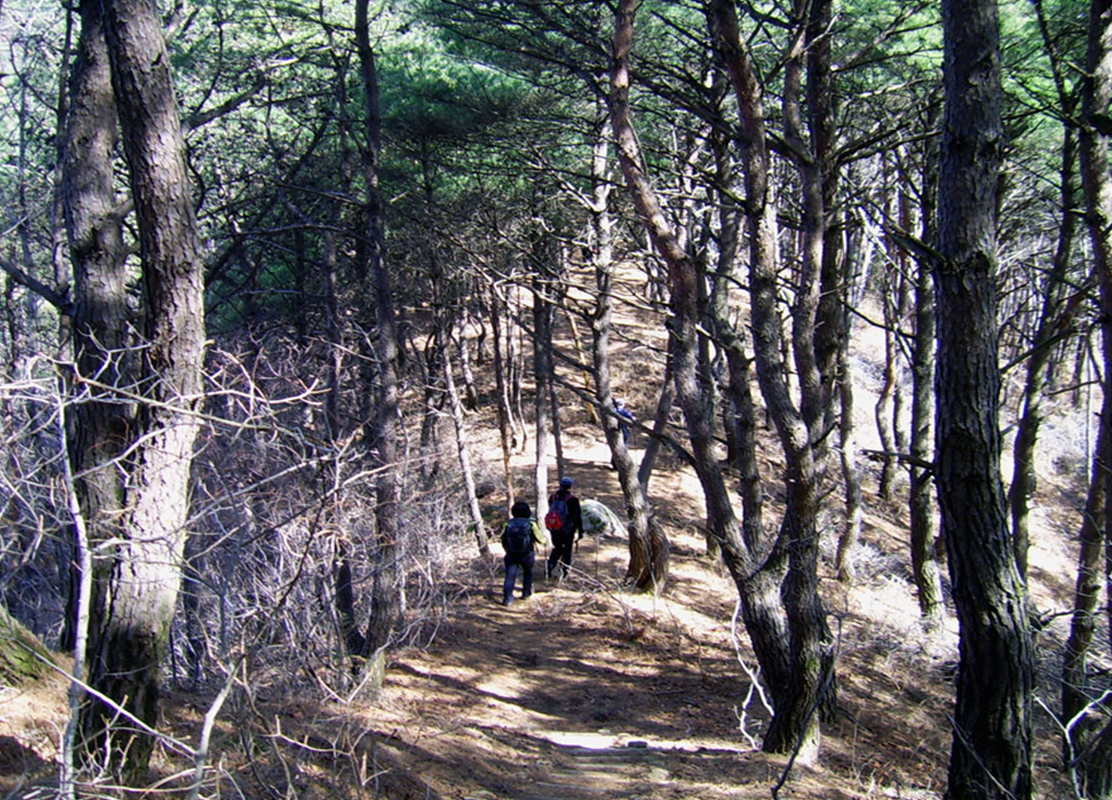 여원재 도로를 가로질러 건너서자마자 버스정류장 좌측의 나무 울타리가 있는 곳이 대간 진입로다. 소나무 군락지를 따라 진행하게 되는 등산로는 비록 주위에 마을이 가까이 인접하여 있지만 호젓한 산행을 즐길 수가 있다. 임도를 따라 진행하다가 서서히 등산로가 가파르기 시작한다. 마을에서는 합민성 터와 고남산 정상 통신시설물이 손에 잡힐 듯이 보이는데 막상 산길로 접어들면 길이 없다. 합민성까지는 잡목 숲을 헤치는 한편 벌목을 했는지 발길을 가로막는 나무들을 타고 넘어야 할 정도로 힘들게 오르게 된다.